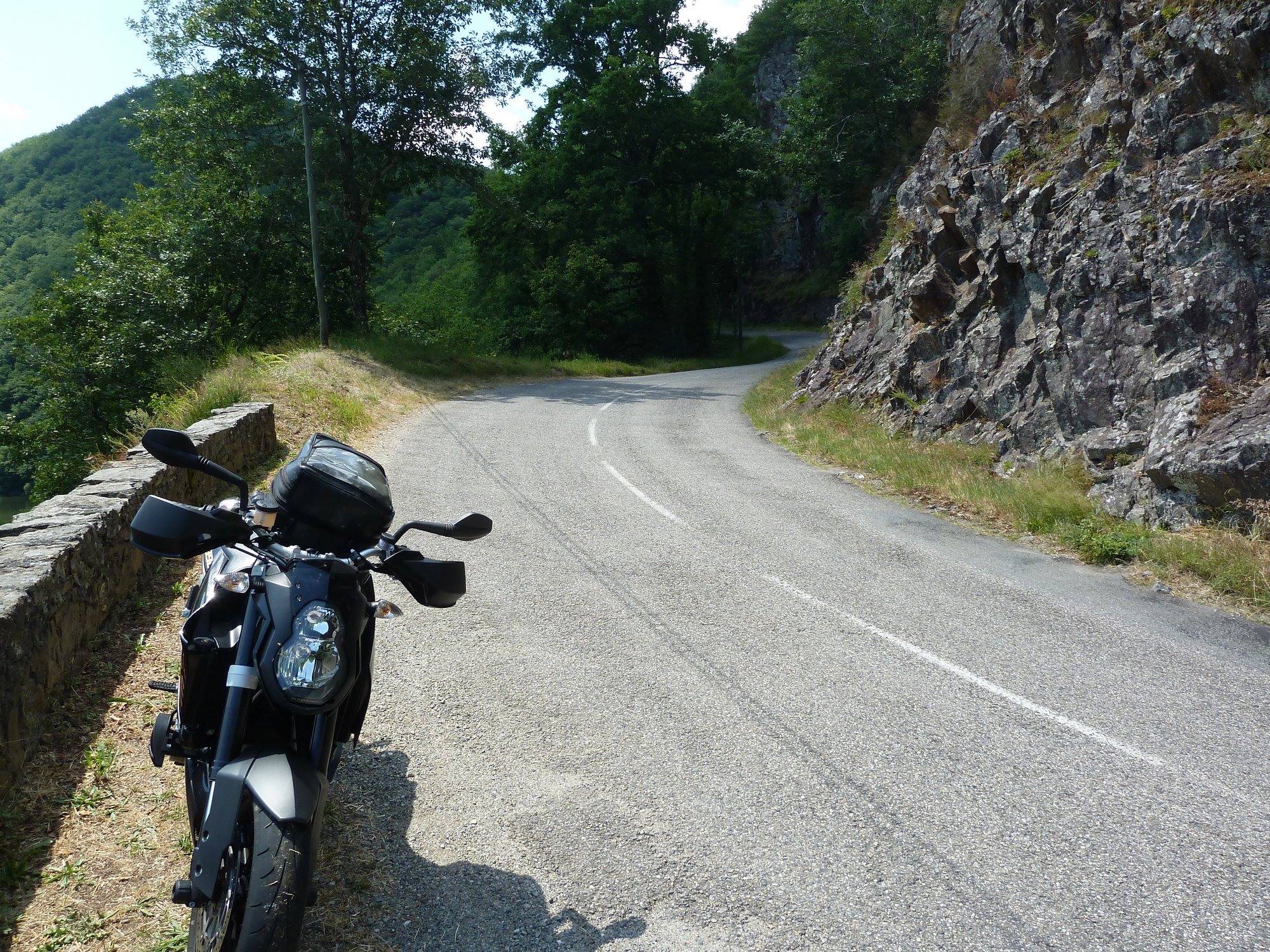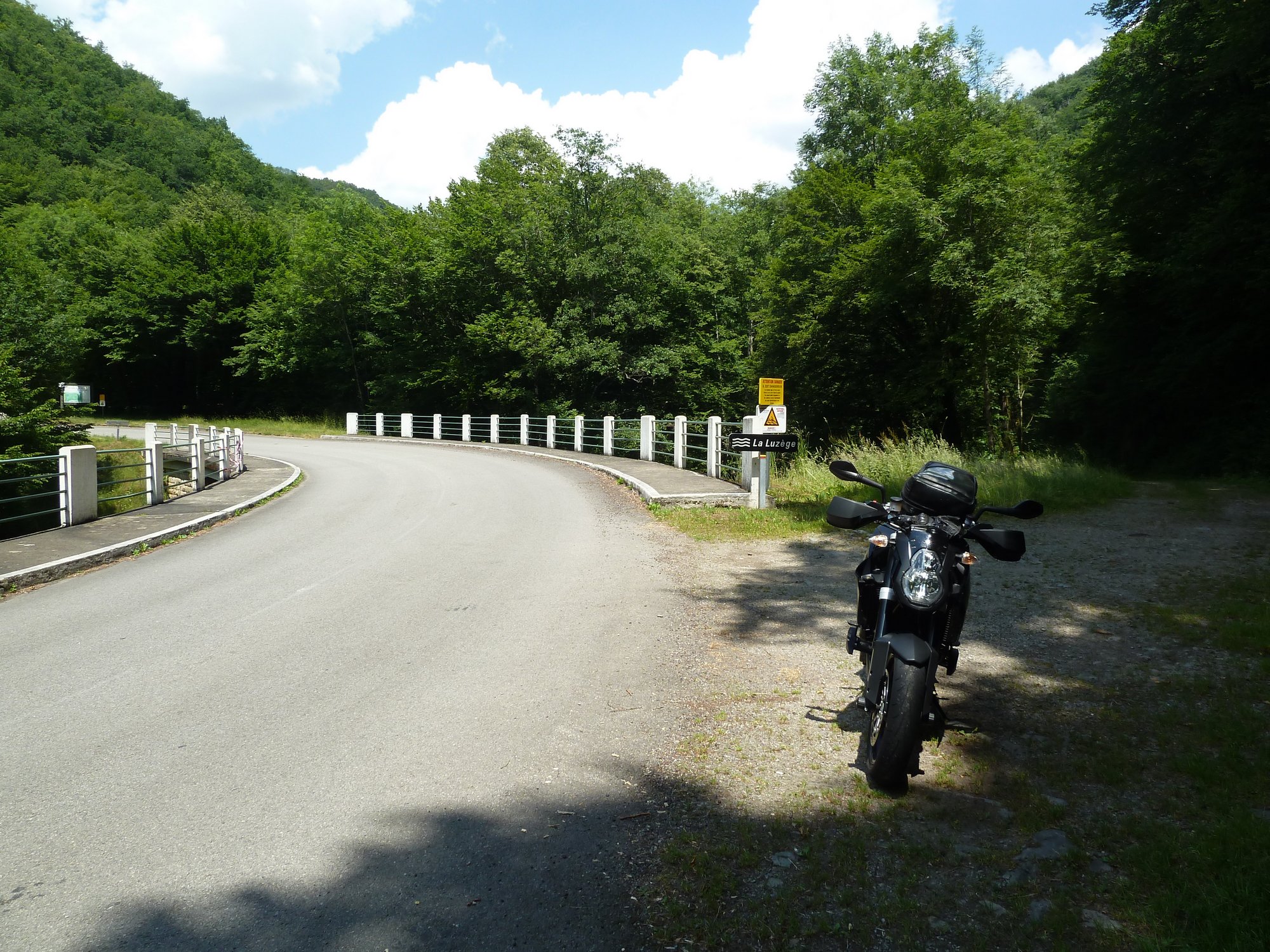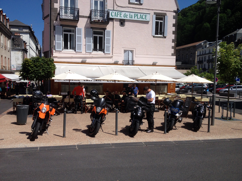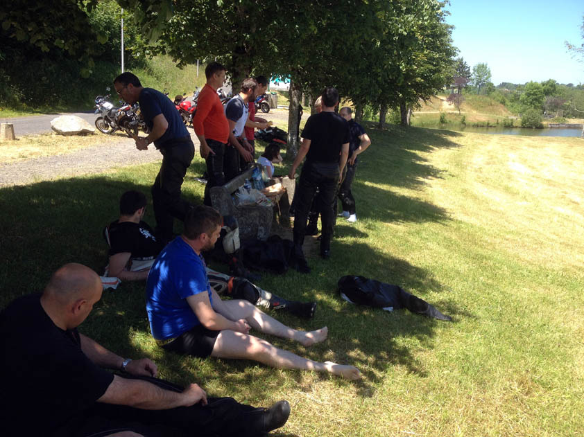 vallée de la luzege et de la dordogne col de neronne barrage de sarrans vide lolow est chaud patate, pret gober du moustique!!! debrieffing : "Bon les gars on va se calmer il est pas midi et deja deux par terre" miam miam et sieste pour certains, B12 dans ses pensées mon retour : pont de treboul qu'on a pas fait samedi pour le groupe 2 la digue du barrage, je voulais la voir ben bonne idée, route barrée, detour de 50kms, suite a notre echange avec krusty la veille on avait pas remis les compteurs a 0, petite frayeur dans le no-man land. ben aussi bien dans l'autre sens le col du pertus 1262.8kms de bonheur pour revoir les copains, vivement le prochain