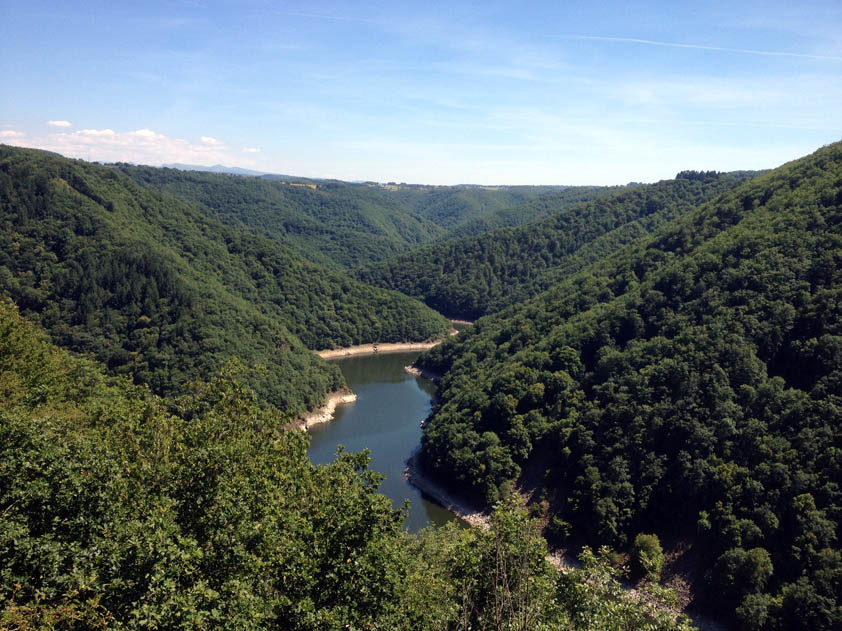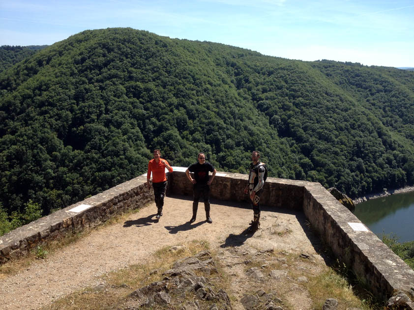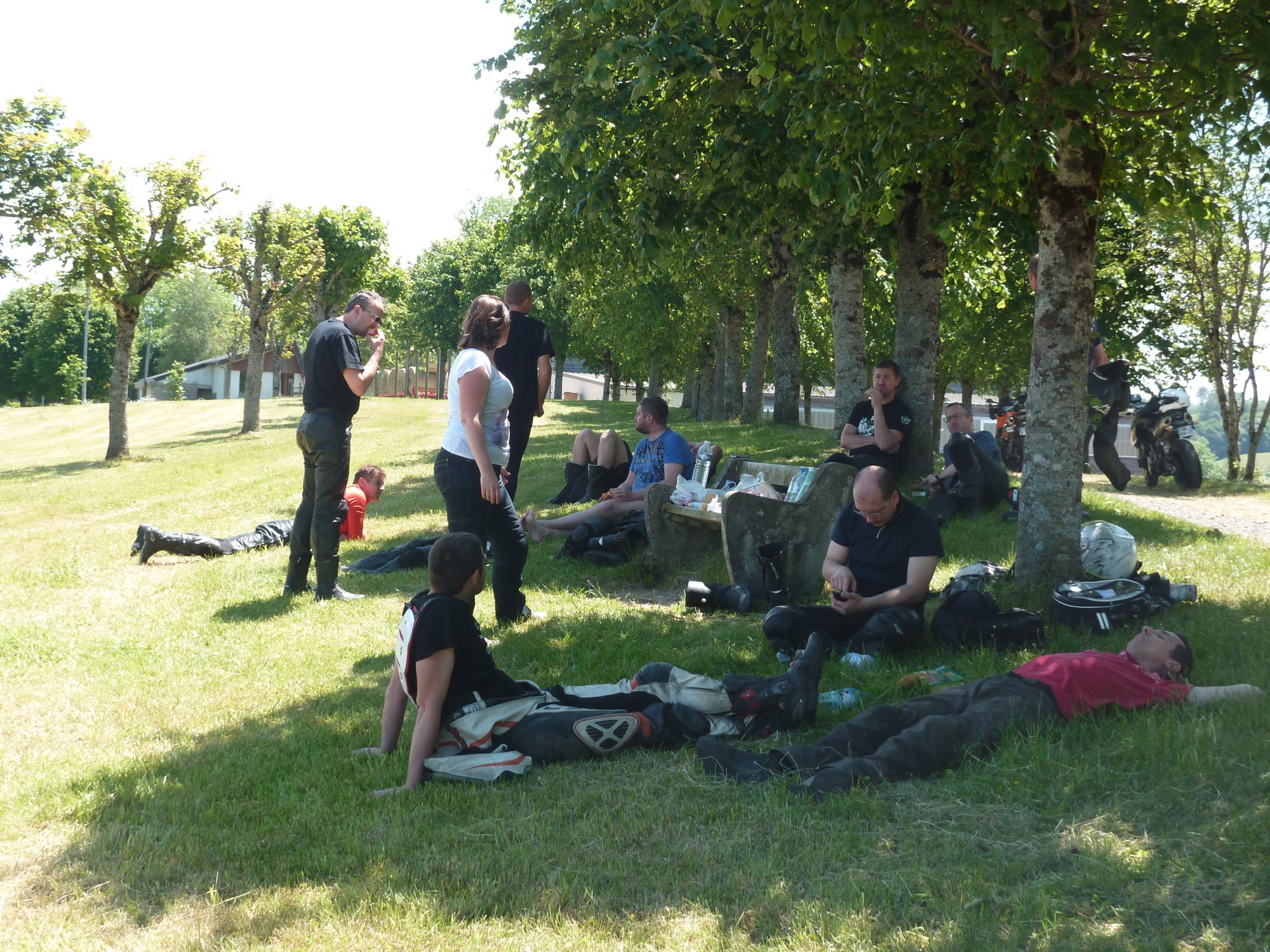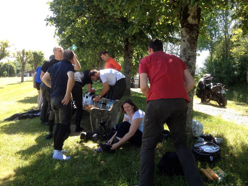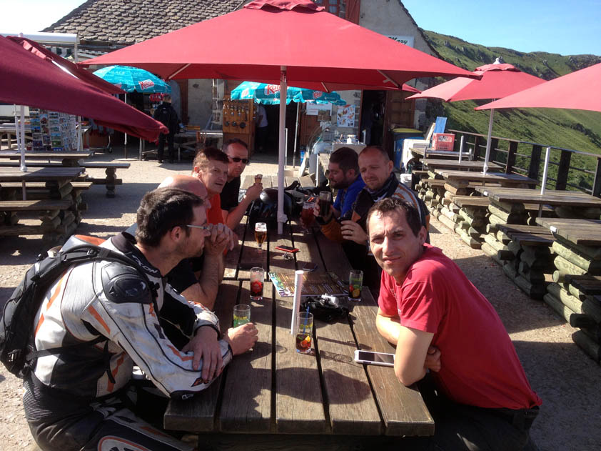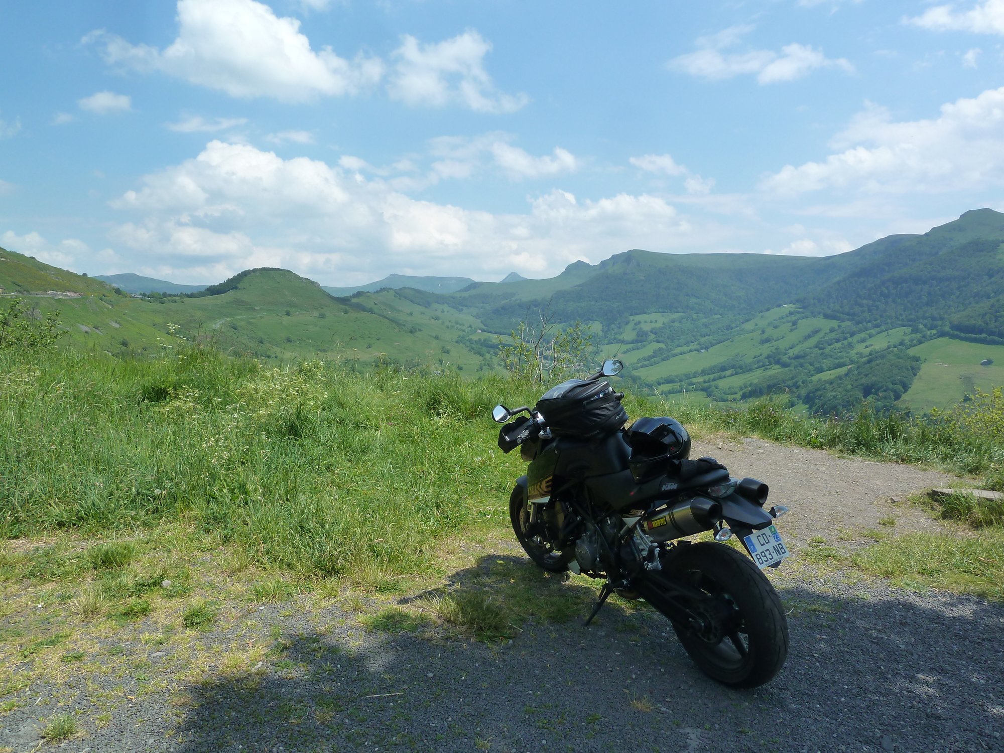 vallée de la luzege et de la dordogne col de neronne barrage de sarrans vide lolow est chaud patate, pret gober du moustique!!! debrieffing : "Bon les gars on va se calmer il est pas midi et deja deux par terre" miam miam et sieste pour certains, B12 dans ses pensées mon retour : pont de treboul qu'on a pas fait samedi pour le groupe 2 la digue du barrage, je voulais la voir ben bonne idée, route barrée, detour de 50kms, suite a notre echange avec krusty la veille on avait pas remis les compteurs a 0, petite frayeur dans le no-man land. ben aussi bien dans l'autre sens le col du pertus 1262.8kms de bonheur pour revoir les copains, vivement le prochain