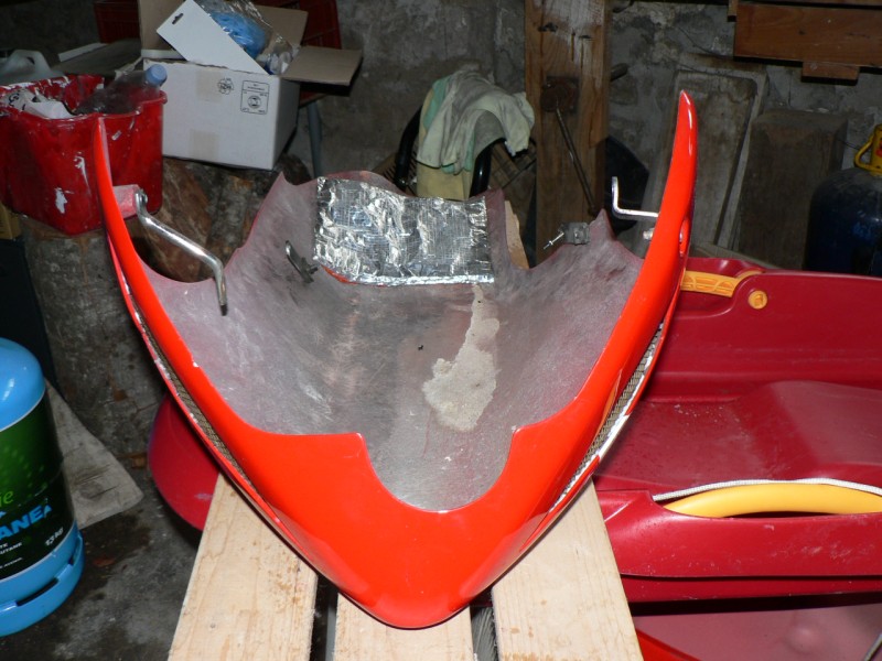 - sabot rouge ( photos à suivre) avec protection thermique pour la tubulure d'échappement: 100 euros frais de port compris