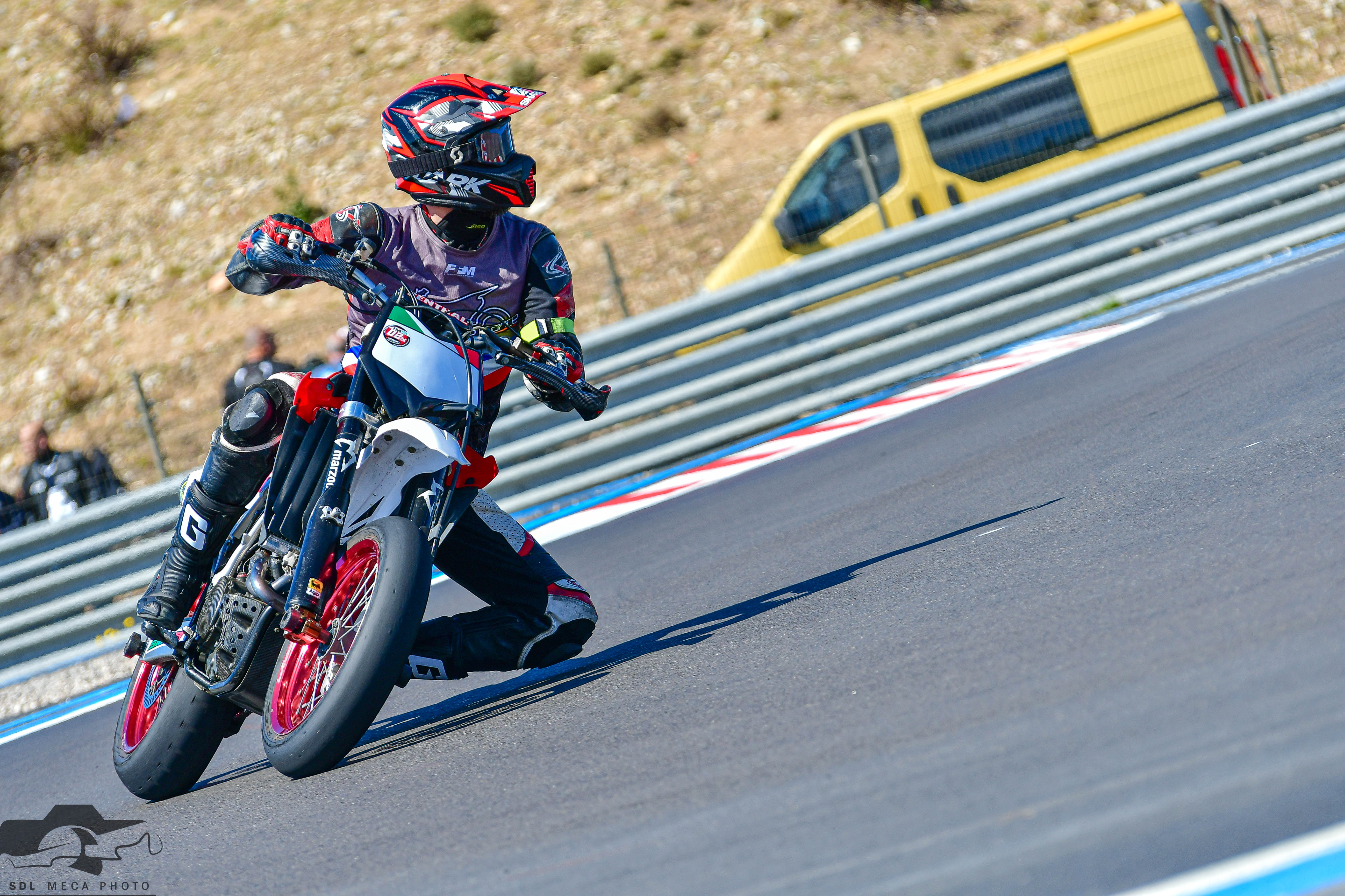En toute honnêteté, il y a UN virage, un gauche en monté avant le "Rond-Point" du haut, un "droite long sur gauche qui ferme" dans lequel elle élargissait systématiquement plus que le SXV, et m'embarquait à l'exterieur plus que je n'aurais voulu. Mais j'auras tendance à incriminer une détente trop ouverte à l'avant, ou peut-être une compression un poil trop fermée, donc un empattement excessif dans cette phase, mais c'est vraiment un peu tout ce que je peux inventer pour lui trouver des défauts.