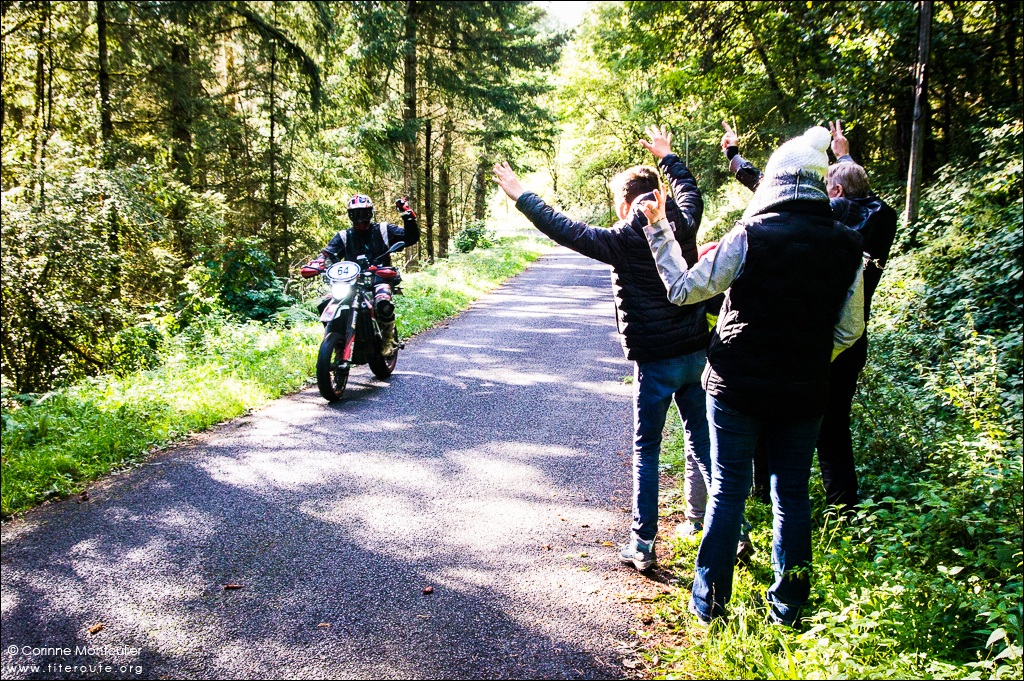 Naaaaaan…. Celle de te faire violence à te faire plaisir. Celle de partager un moment unique avec les potes. Celle de vivre un truc qui ne serait pas venu à toi tout seul si tu n’était pas botté le c*l pour aller le chercher. Celle d’être ’à ta place”, en train de faire de la moto comme tu l’aimes, avec tes potes, loin de tout, et juste concentré sur la route, la trajectoire, l’adhérence. 110% accaparé par le moment, expurgé du reste du monde qui te pollue ton quotidien.