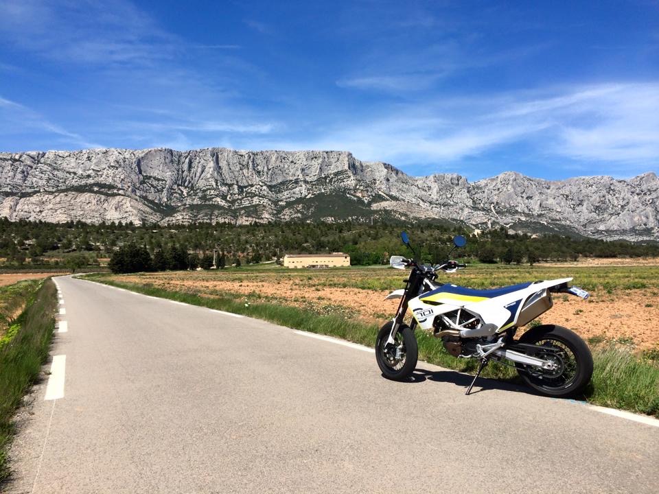Mais comme je suis de nature curieuse, que j'aime bien les monos, et que le trip Supermot' me fait rêver même si je suis une grosse quiche de la glisse, je suis quand même allé faire un tour avec avec la semaine dernière pour essayer de me faire mon idée. Timing serré, comme d'hab avec deux filles, mais j'ai réussi à caser 45 mn au pied de la Sainte Victoire.