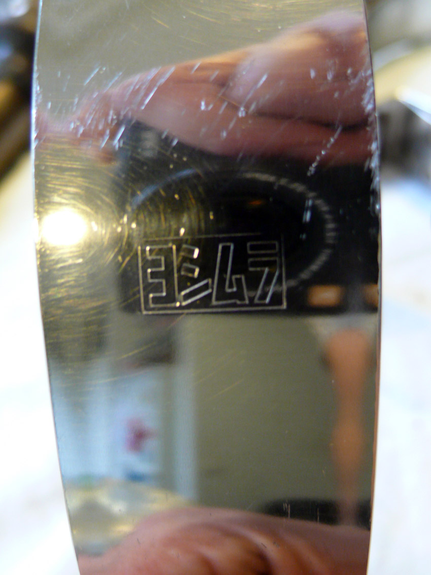 Avec le temps (et à cause d'un putain de détergent "nettoye-jante" utilisé par erreur), l'anodisation à disparue. On peu en voir un reste à l'emplacement du collier de fixation et sur la face intérieur (côté roue).