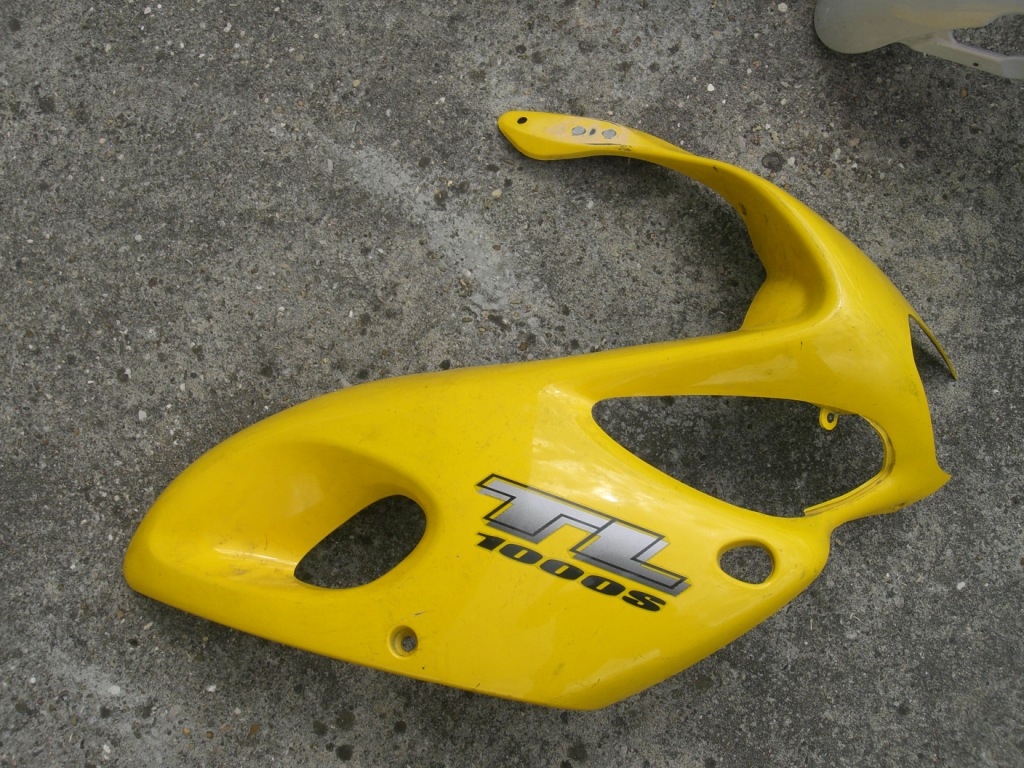 Carenage avant avec les petites pieces de raccord sous compteur, la bulle, carenage coupé pour montage grand guidon. peinture propre avec quelques défauts dues au stockage 50€