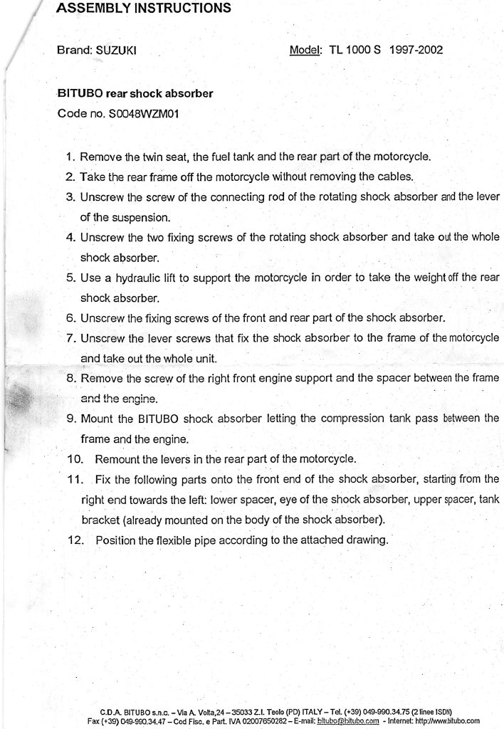 on voit bien qu'il y a les meme largeur de buselures de chaque coté de l'amorto puisque la patte va du coté fin pour finalement égaler la largeur du coté opposé.Simplement il me semble que c'est plus pratique de poser la patte de bride de bombonne plus accessible donc vers l'exterieur comme tu veux faire.ça passe plus pres des convoyeurs et moins pres de la durits d'eau entre les cylindres.Sinon cet amorto est génial,combiné au RHA qui est bien mieux que la bielette suz ça permet pleiiiins de réglages et c'est fiable