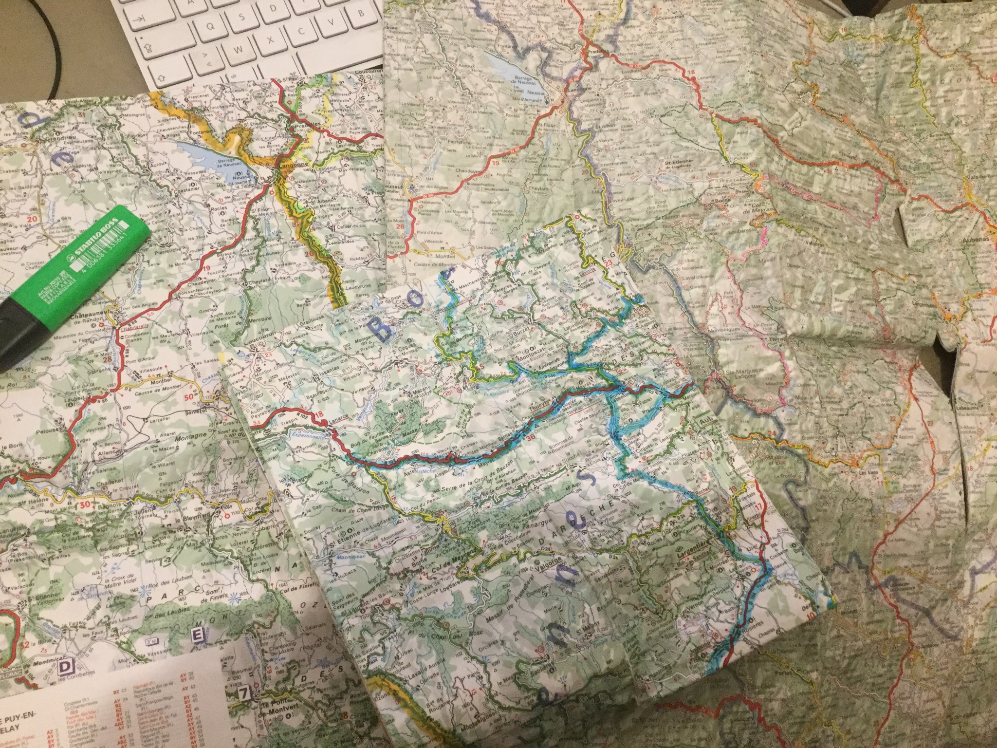 Bon, le plan loose, c'est que toutes mes cartes de l'Ardèche sont déjà repeintes au stabilo