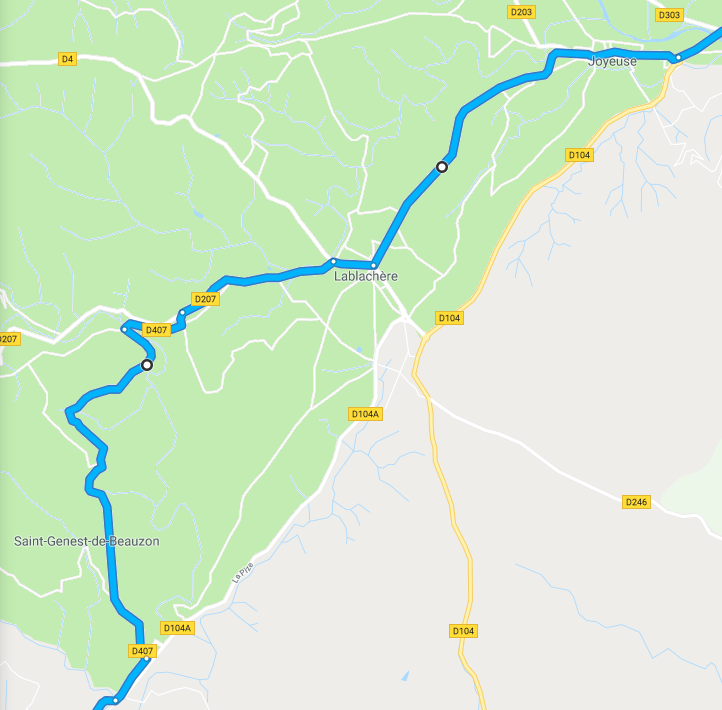 Pour ma part je vous quitterai à Ruoms pour tracer chez moi, mais si le RB n'est pas définitif et que vous n'êtes pas cuit, à Joyeuse il y a moyen de "passer par derrière" (RB 2012 de mémoire) plutôt que par l'axe principal.