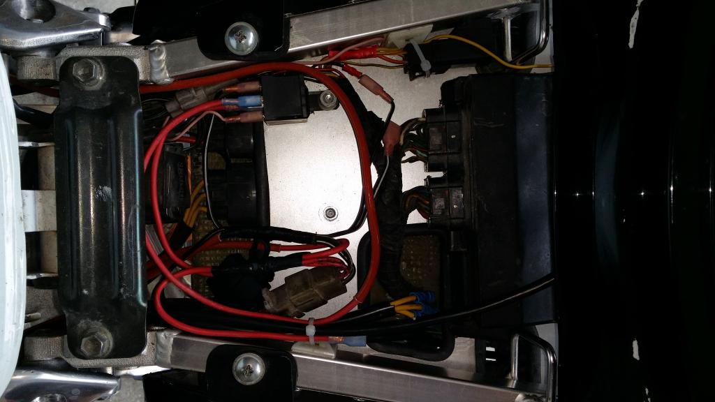 Donc pour fixer ces derniers, j' ai du faire une toile, pour la partie supérieur, un PdR d'origine hs recoupé pour reprendre les fixations d'origines du CDI et utiliser l'emplacement de la trousse a outils pour le power commander et le speedohealer.