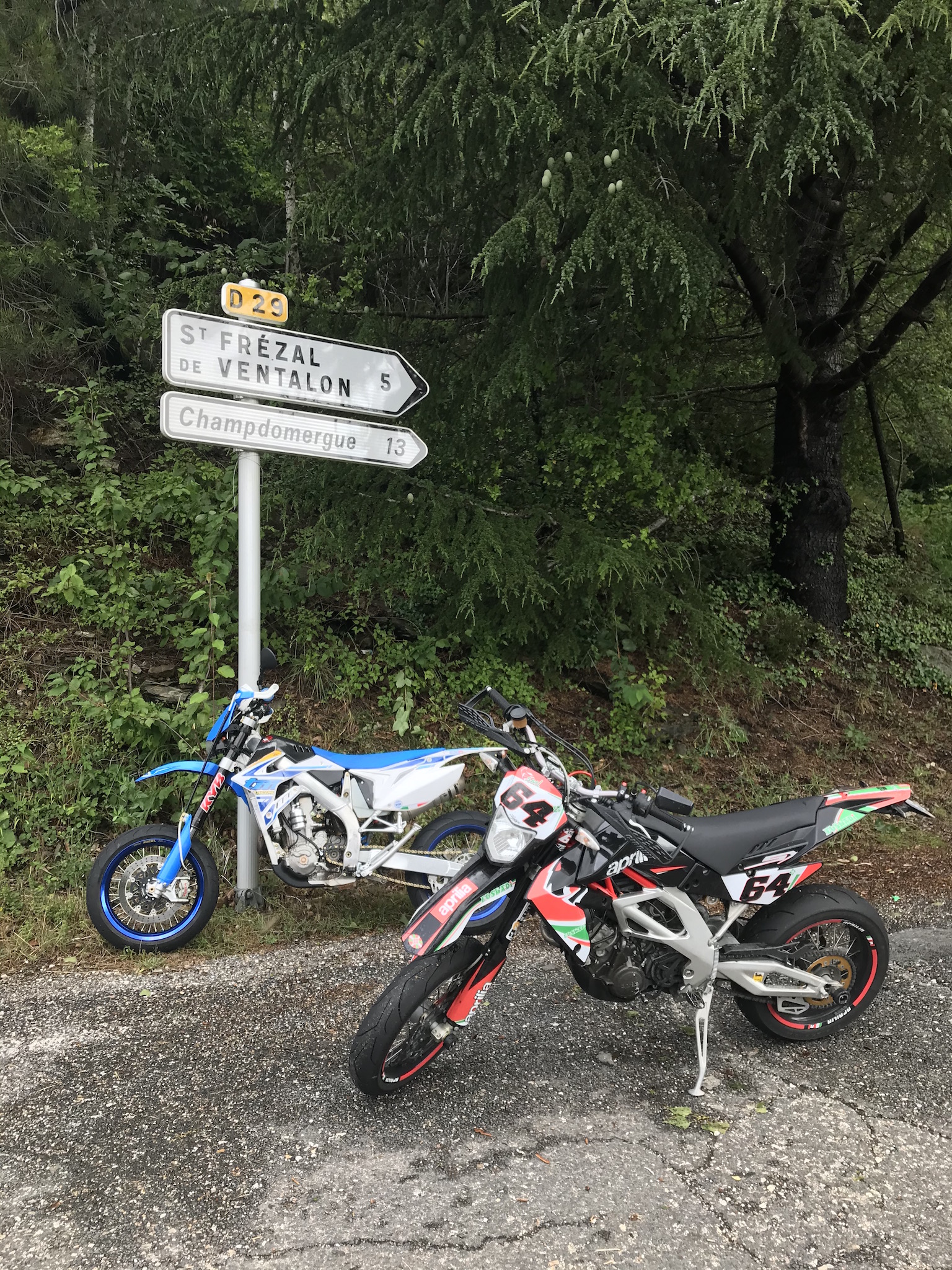 300 bornes de Cévennes trempées, encore avec la mauvaise carto, (celle qui te pousse au cul quand tu coupes les gaz), mais on s'est bien marrés quand même !