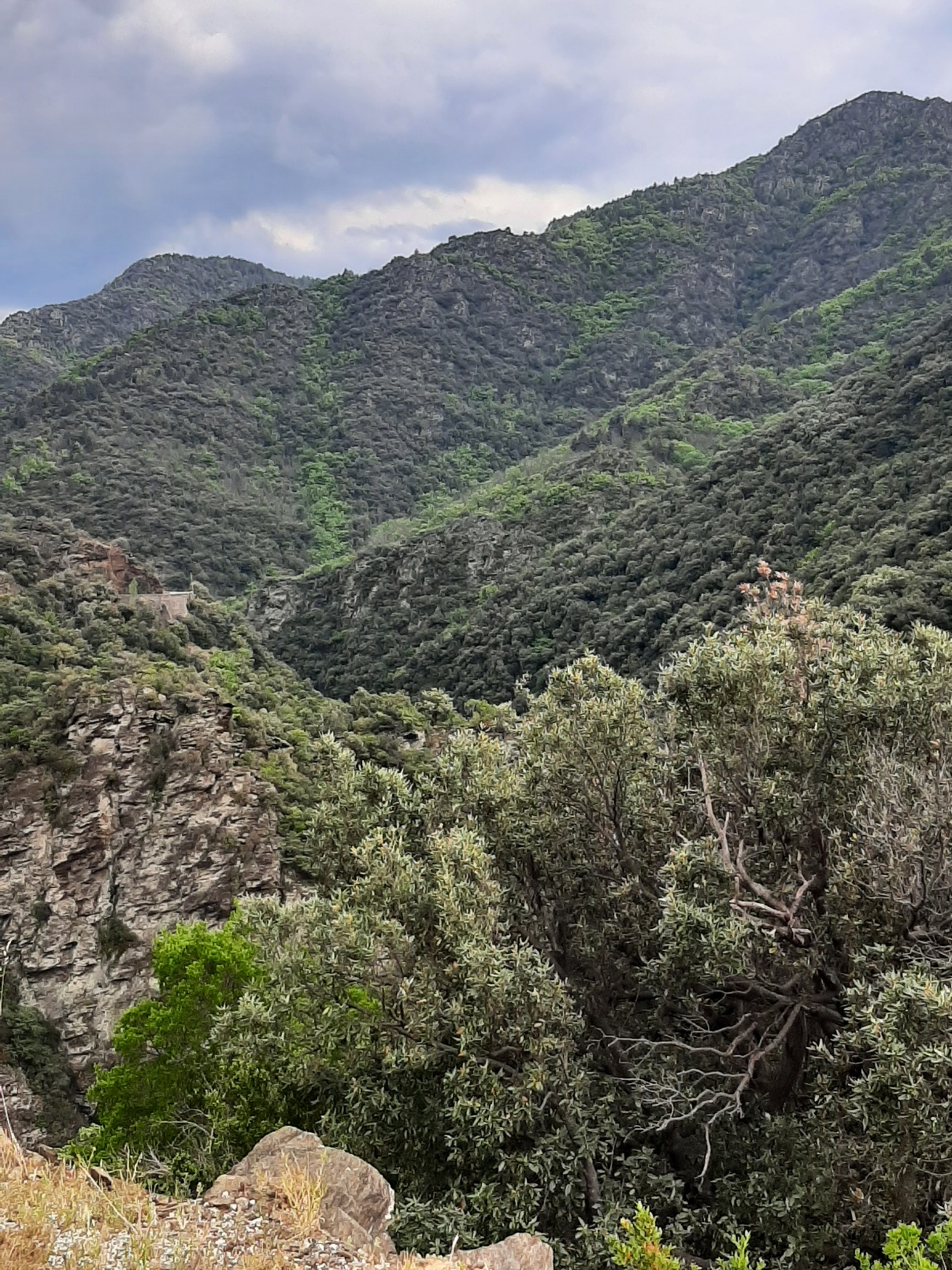 La descente vers Ollières, façon petite route corse -et à travers La Comtée- au dessus des gorges de l'Eyrieux est superbe.