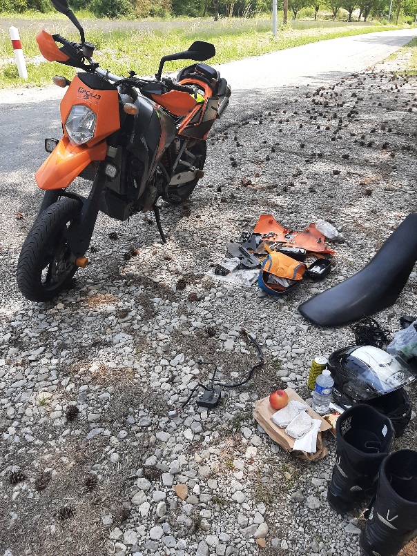 Je suis en rade sur un carrefour, quelque part dans le Vercors, avec des containers de recyclage, il fait 90°C sous le casque!!!
