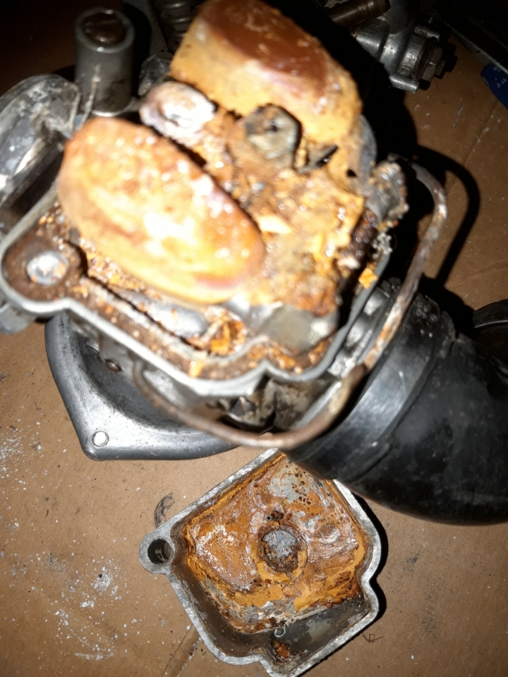 Bac à US + vinaigre blanc + microbillage à prévoir. Vas y très doucement sur les carburateurs : les filetages sont fragiles