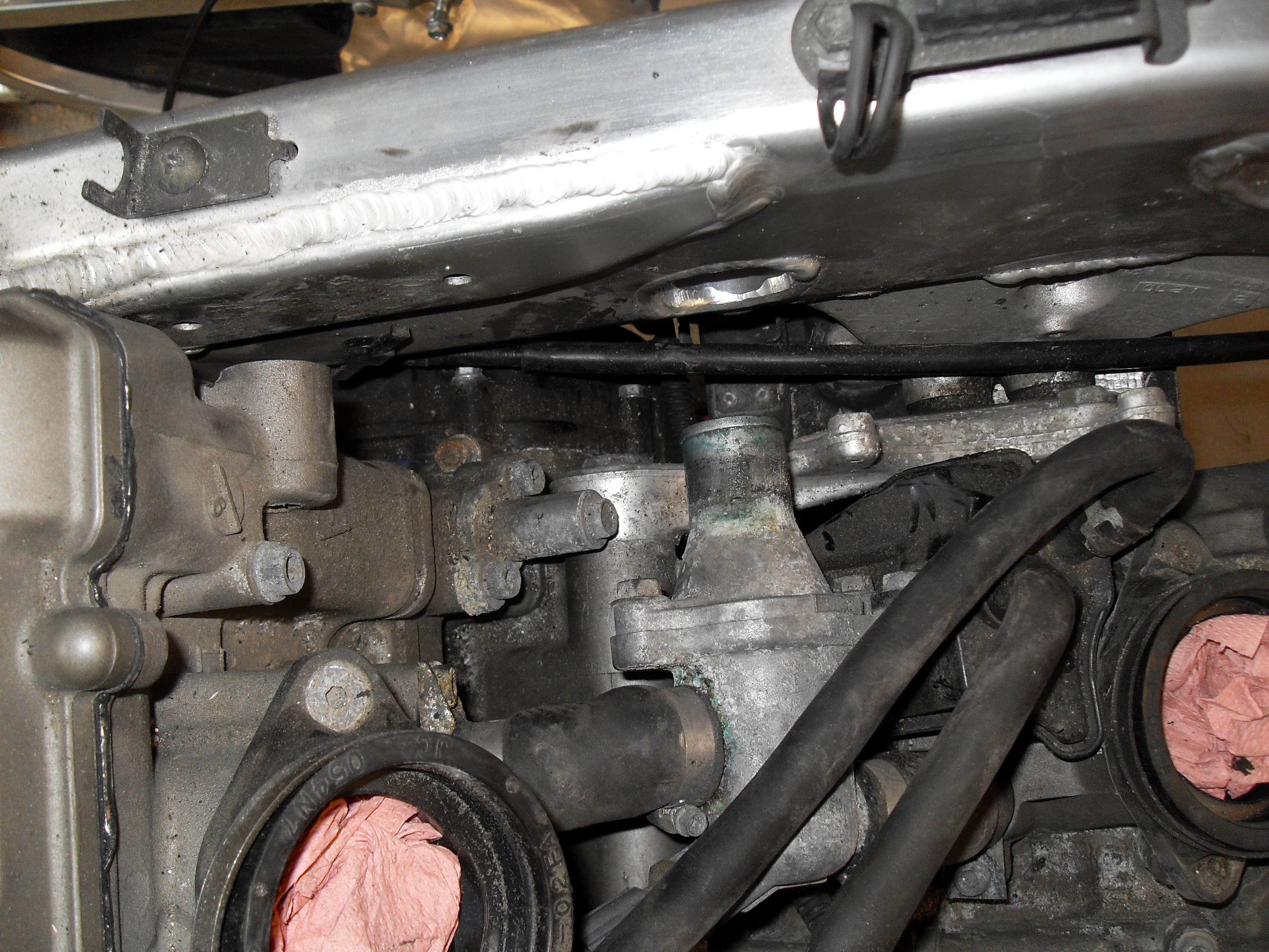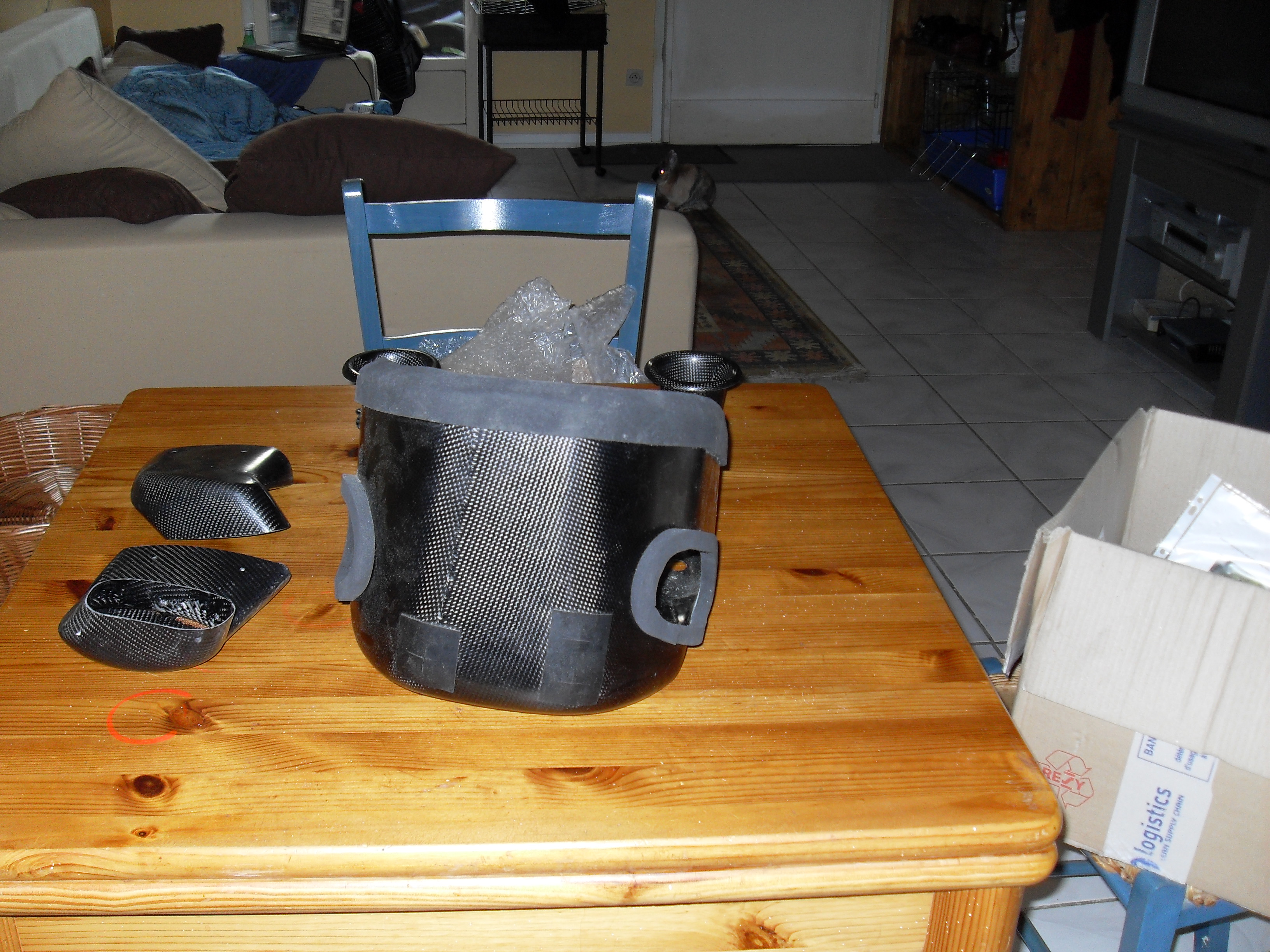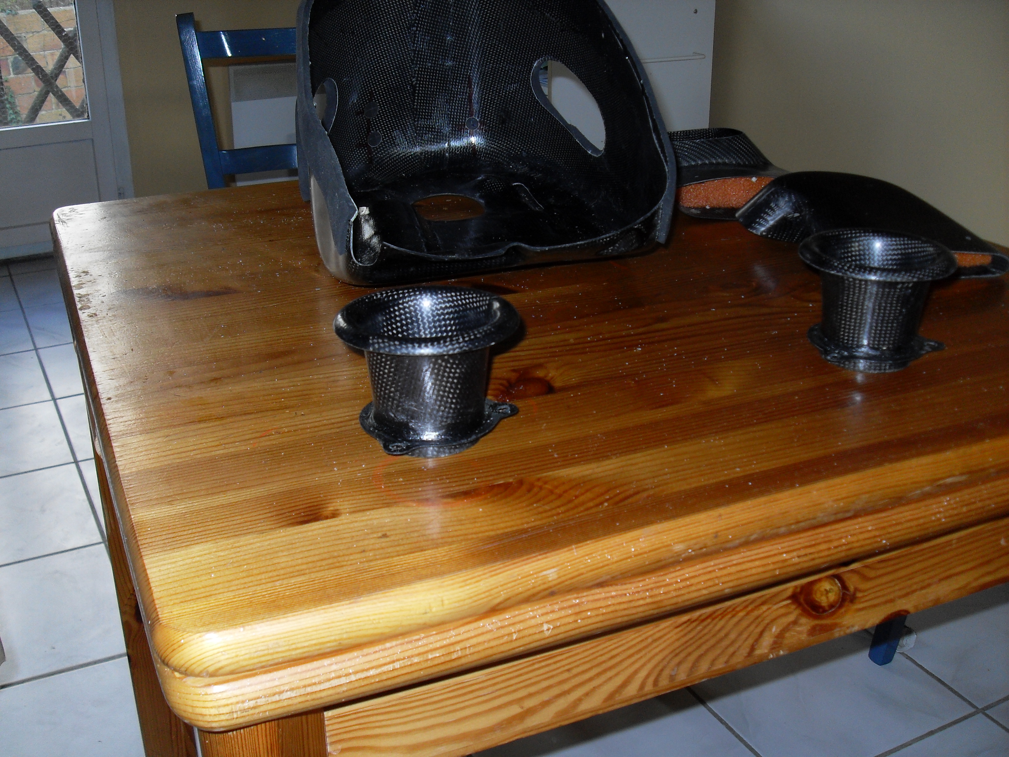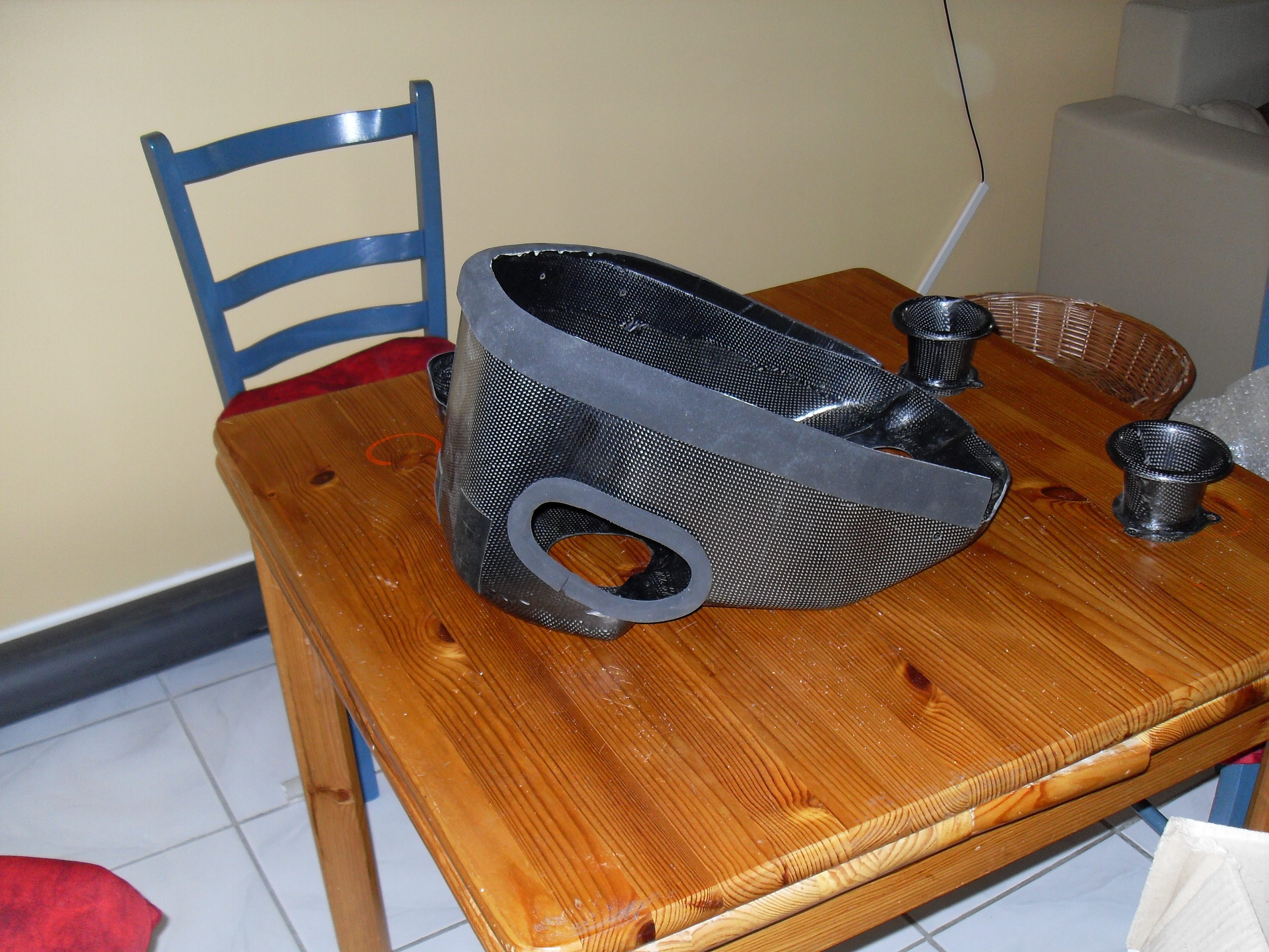 J'attends mes durites silicone pour le circuit de liquide de refroidissement. Donc j'ai fait un montage à blanc, voici ce que ça donne: Donc la boite a air carbone n'a pas de couvercle, c'est le réservoir qui fait office de couvercle pour optimiser le volume.