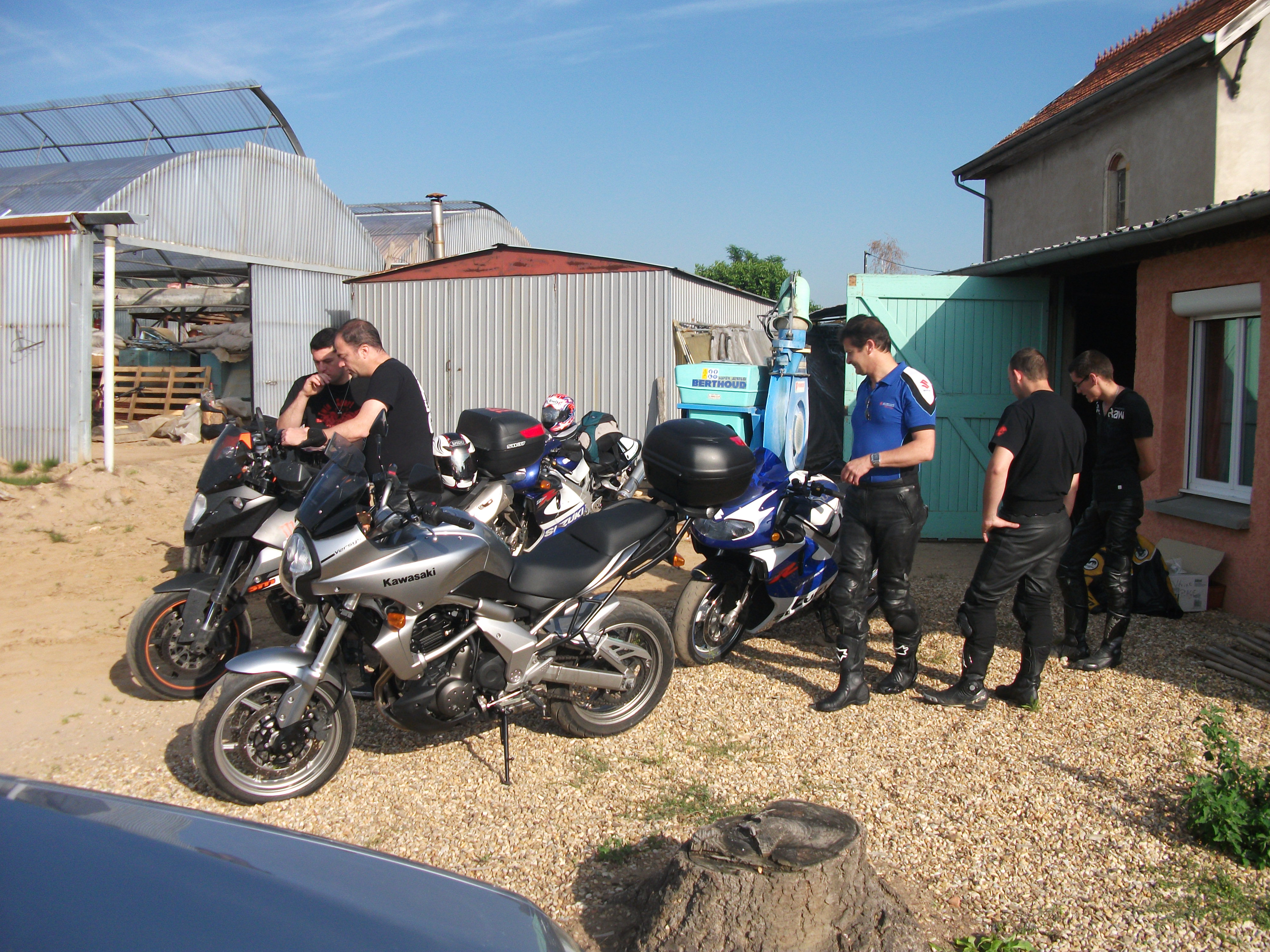 Parti jeudi matin à 9 h , direction B1200 , tout va bien , il fait un temps magnifique :love10: :love10: :love10: , Lolow nous rejoint vers 13 h et on monte sa moto à coté de la mienne sur la remorque .4 h de totore plus loin ( pour l’anecdote , ça roule une xantia ( PV reçu lundi :twisted: :twisted: :twisted: :twisted: : 119 km/h pour 110 à Bessey en chaume , ben Lolow , tu pouvais pas prevenir au lieu de dormir :sad5: :sad5: :mrgreen: :mrgreen: ) on arrive chez Remi frais où Krusty et Chris sont déjà là ( Krusty déjà rincé :mrgreen: :mrgreen: :mrgreen: )