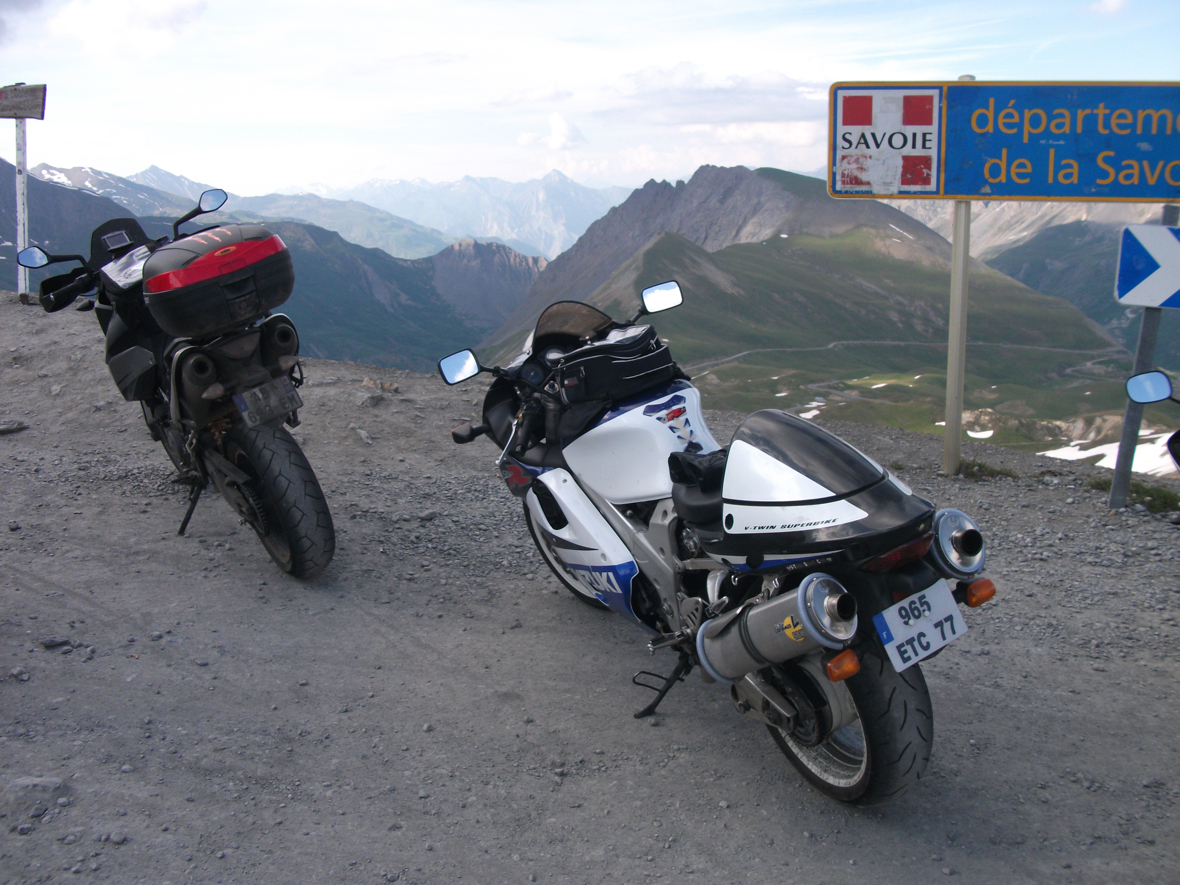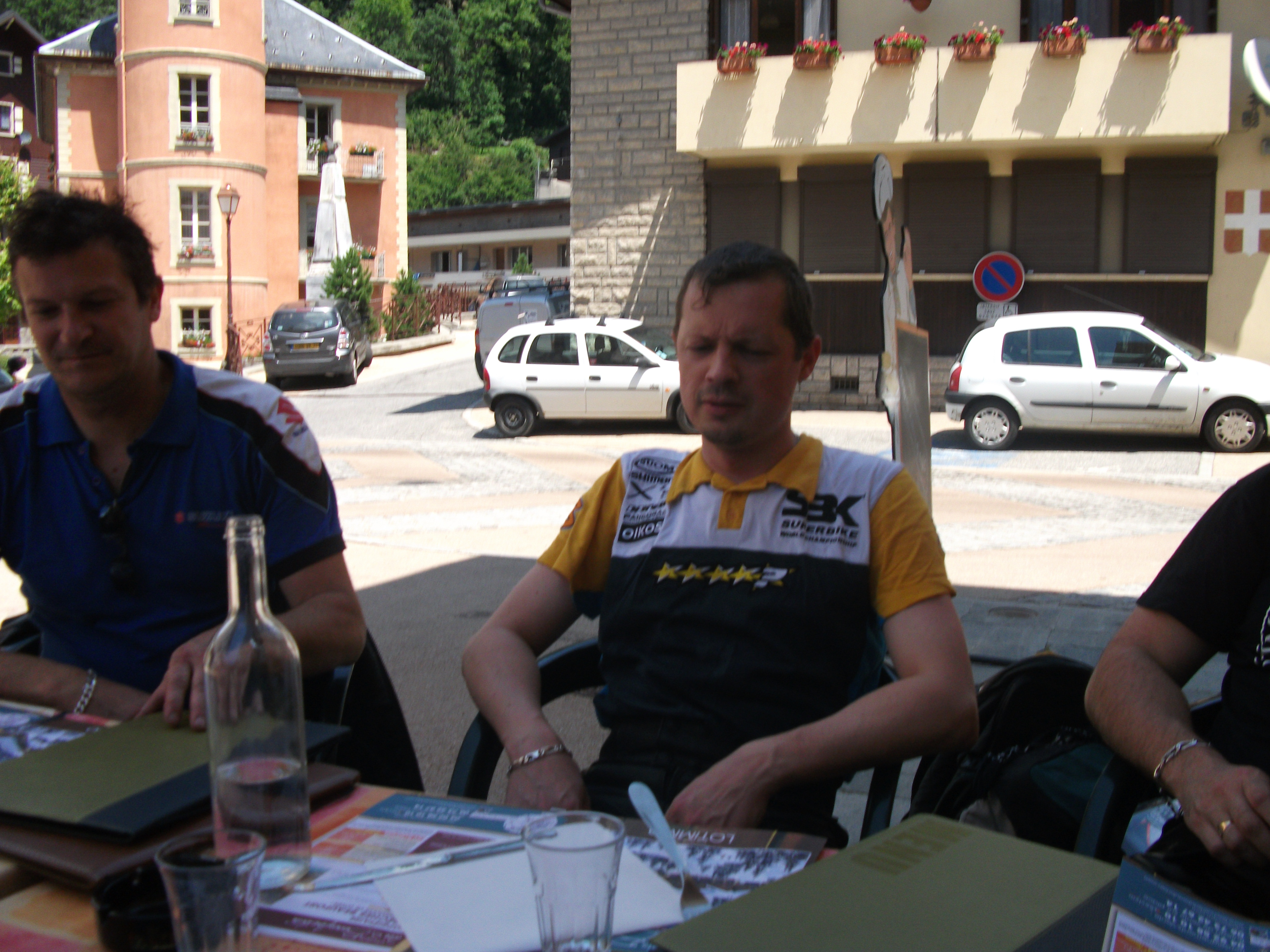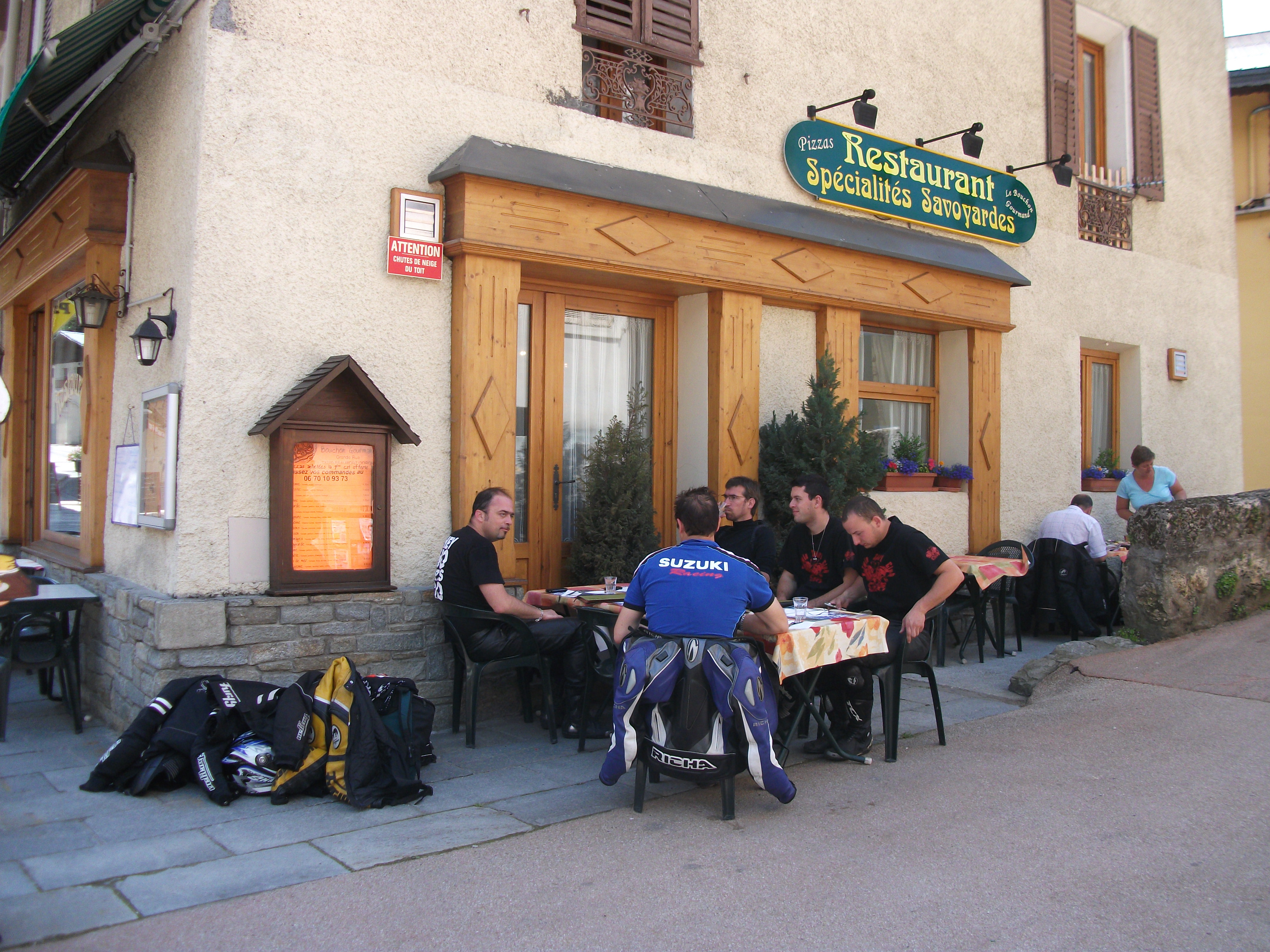 On repart un peu dépité , les fantômes de l’ardéche 2007 nous revenant à l’esprit :roll: :roll: .petites routes bien sympa où l’on commence à se chauffer pour le samedi . On rejoint Thierry pour le repas et on se fait le col de la madeleine pour la digestion :| , on croise Leglaude et perenoel dans la descente vers La chambre ( ces enfoirés s’amusant déjà à balayer leur moto en entrée de virage devant mon nez lors de mon doublage :mrgreen: :mrgreen: