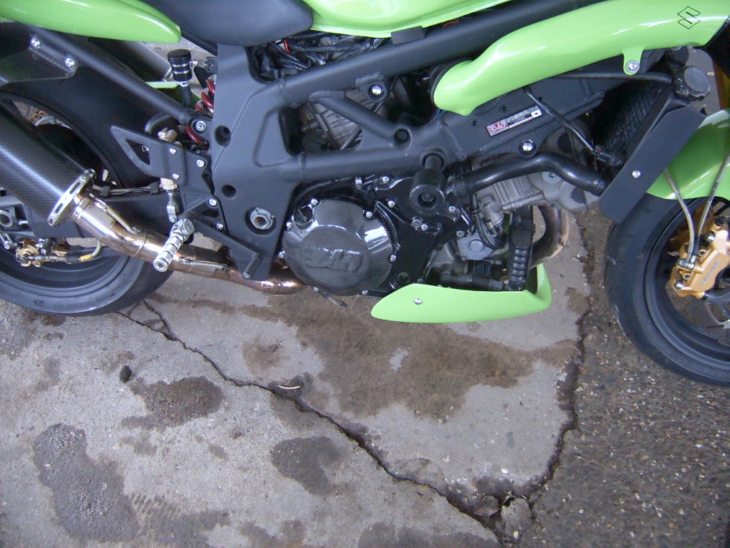 fourche gsxr k4(ressort olhins),etriers de frein zx10r,gdb avant gex k5,amortisseur de direction hyperpro+support,disque de frein av et ar branking,optique fz6,compteur koso,poignée,guidon,reservoir de fluide rizoma,mc d'embrayage magura radial 16mm,mc de frein 19mm braking,protege carter carbonne yoshimura,amortisseur arriere EMC,etrier de frein arriere gsxr, ligne yoshimura,modification du bac a batterie et j'en ai surement oublier