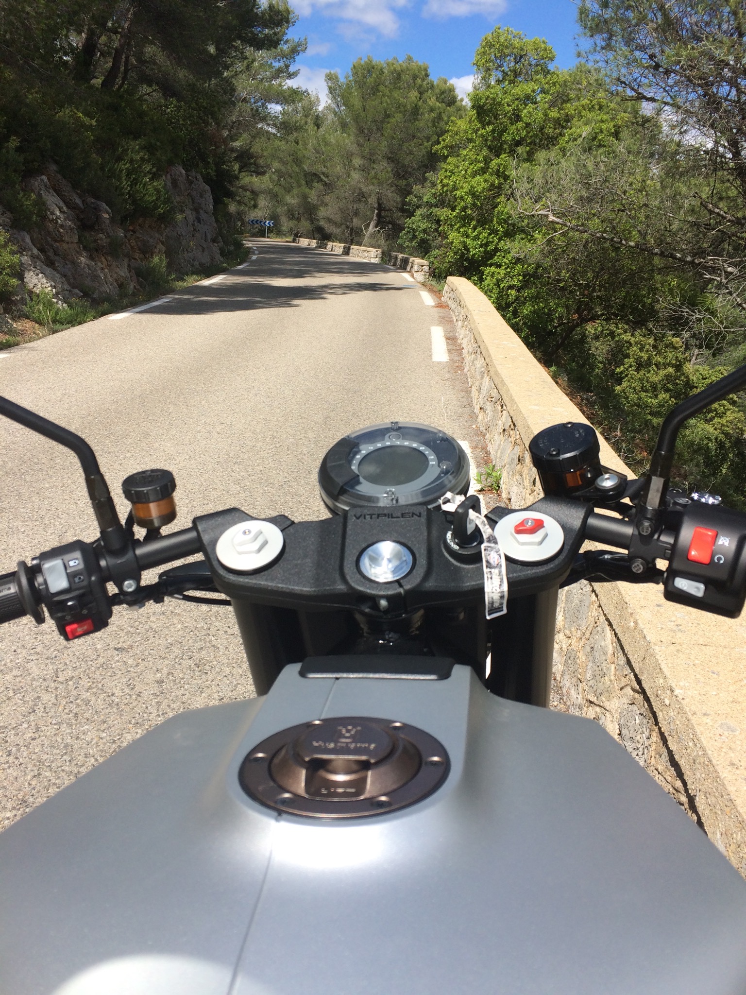 Au final, une très jolie moto, lègère, péchue, agile, qui détonne (et c'est bien sympa) du reste de la production actuelle, sans doute un beau potentiel à arsouille (les journalistes ont l'air de s'être bien amusés avec), mais dans le cas du modèle essayé, un trop grand désaccord avant/arrière pour attaquer un peu avec et apprécier sa partie-cyle.